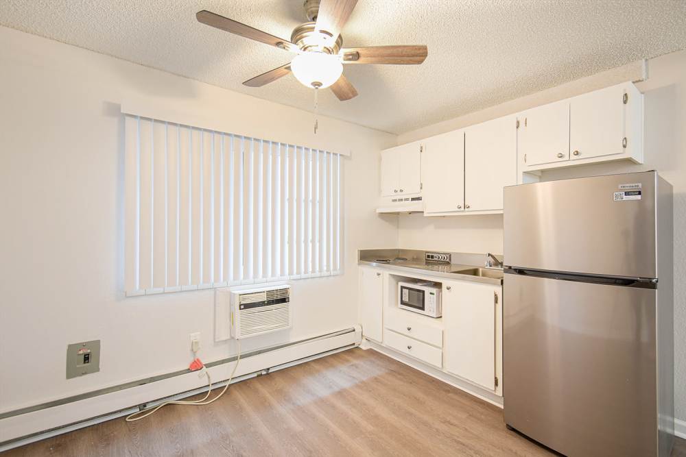 Truckee River Terrace anchors the district as the largest of the three, with 176 studio and one-bedroom apartments. It is the most amenity-complete property in the district, with a fitness center, garage parking, app-pay laundry on every floor, a callbox entry system, and fob-controlled access for added security. On-site office space is available for rent for those who need a dedicated workspace. Wood-style flooring, air conditioning, and generous closet space are standard throughout. Every unit includes gig-speed internet, DIRECTV with HBO Max, Cinemax, and Paramount+ with Showtime, all wrapped into your rent with no add-ons or surprise bills. The Truckee River is a short walk away, putting nature just as close as downtown.